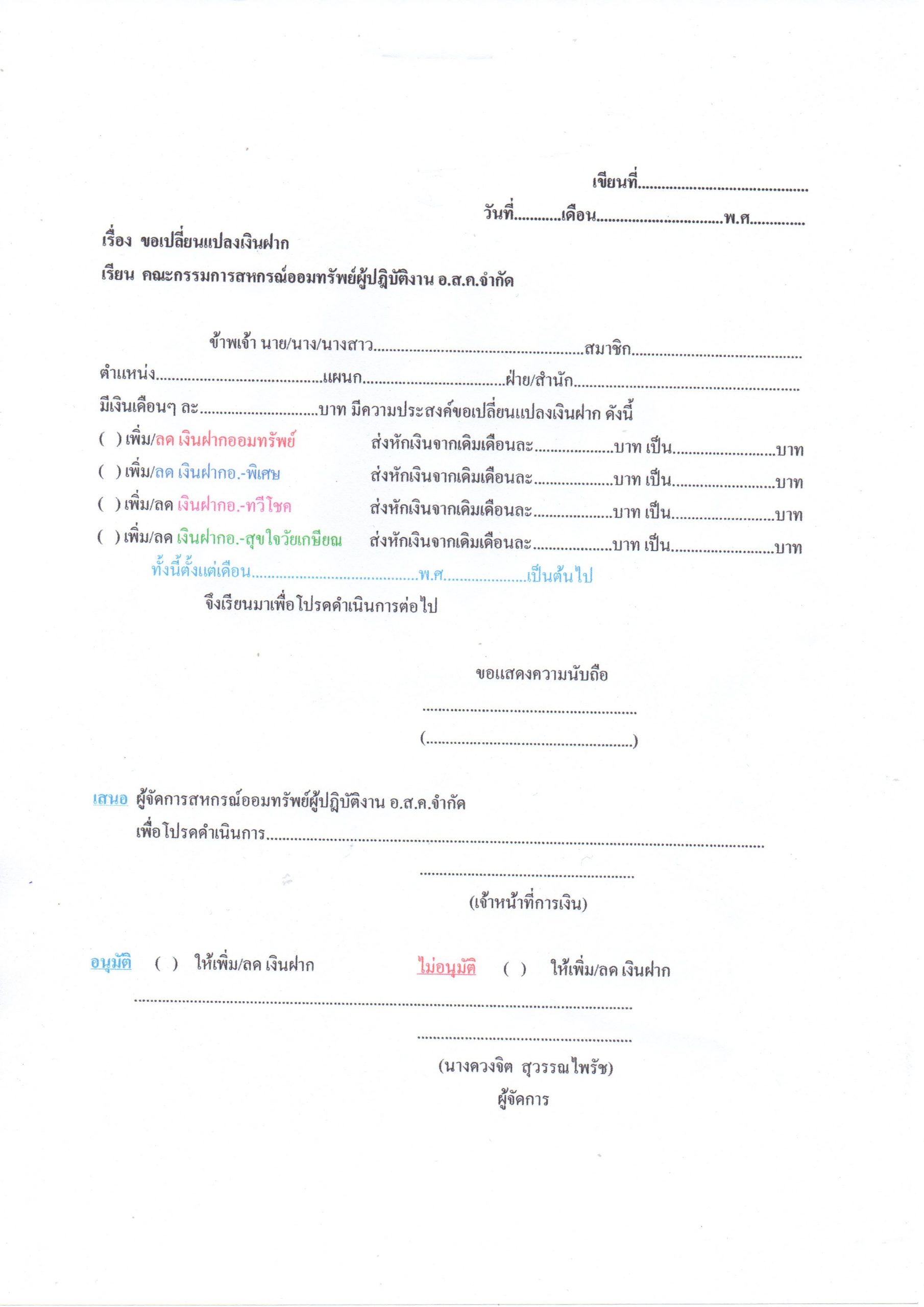 • ขอเปลี่ยนแปลงเงินฝาก